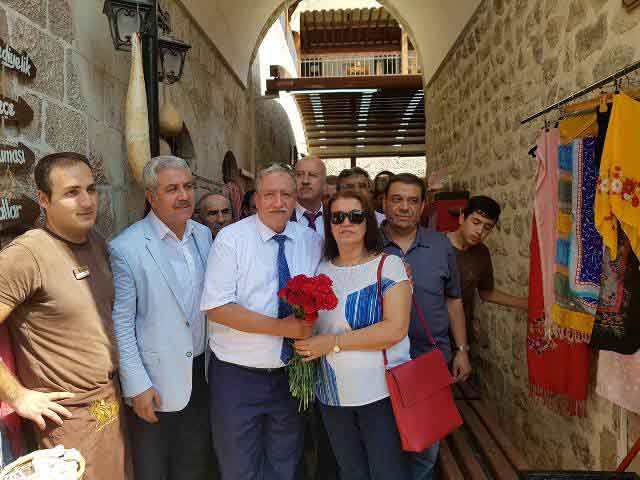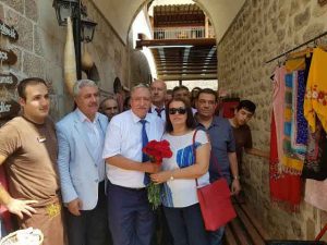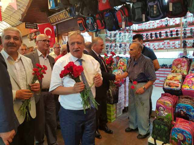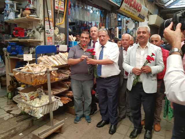 Hatay Esnaf ve Sanatkarları Odaları Birliği Başkanı Kadir Teksöz ve Yönetim Kurulu üyeleri ile Esnaf Oda Başkanlarından oluşan bir heyet dün öğleden sonra Uzun Çarşı, Kunduracı Çarşısı ve çevresi başta olmak üzere çarşı içi gezi ve ziyaretlerde bulundu, sıkıntılı durumdaki esnafa moral olması bakımından çiçek takdim etti. -Cemil Yıldız-