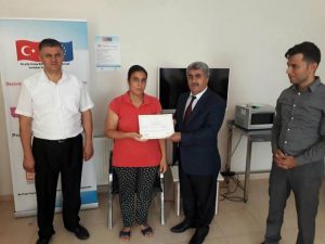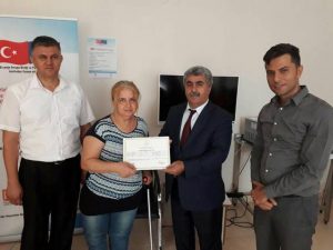 Hatay İŞKUR İl Müdürlü-ğü, “Aydınlığa Giden Lokomotif Projesi” kapsamında, dezavantajlı kadınlar için evde sabun yapımı kursu gerçekleştirdi. İl Müdürü Ziya Yüksel, kursa katılan kadınlara sertifikalarını dağıttı. Bu arada engelli olup da eve kapanmak zorunda kalan bazı kadınlar da sabun yapmayı öğrendi ve belge aldı. -Adil Yeşildağ-