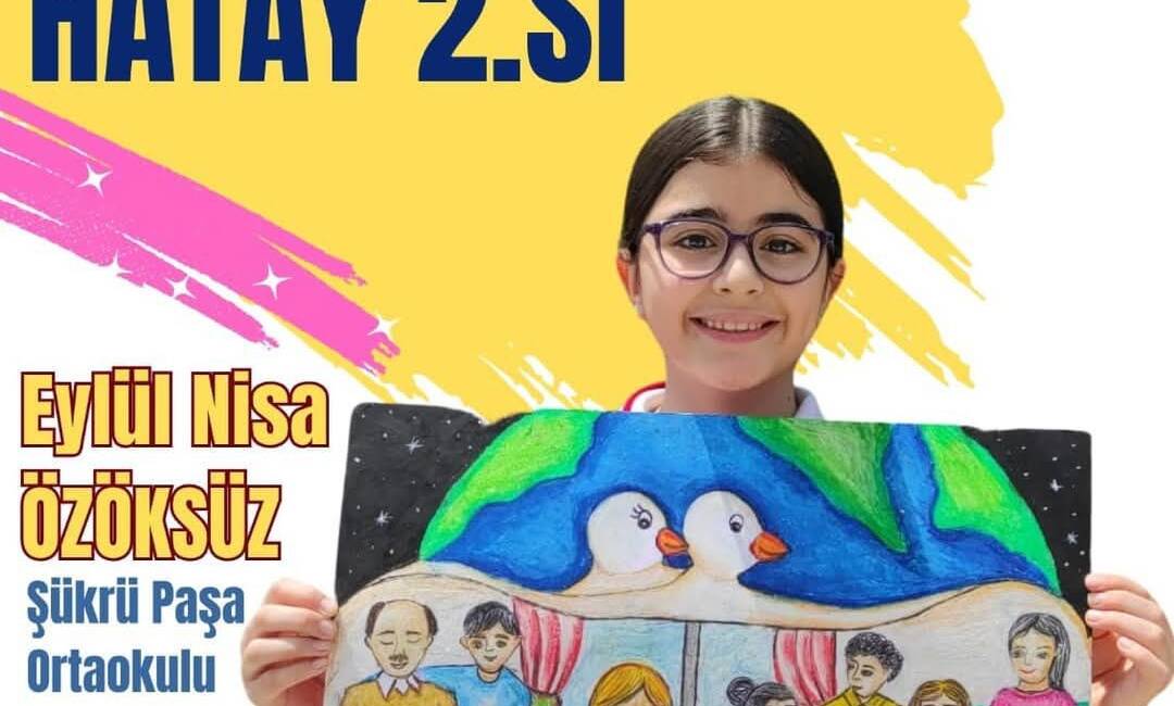 2025 Aile Yılı etkinlikleri kapsamında düzenlenen “Renklerin Diliyle Ailem” temalı resim yarışmasında Hatay-Erzin Şükrüpaşa Ortaokulu öğrencisi Eylül Nisa Özöksüz, Hatay ikincisi oldu.