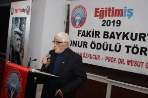 Öğretmen Sendikası Eğitim İş Genel Merkezi, bu yılki “Fakir Baykurt Onur Ödülünü” Antakyalı emekli öğretmen 100 yaşındaki eğitim duayeni Abdullah Özkucur ile Prof.Dr. Mesut Gülmez’e verdi. Geçtiğimiz hafta sonunda Ankara’da gerçekleşen törende: Eğitim İş’in geleneksel Fakir Baykurt onur ödülü: Prof.Dr. Gülmez ile Antakya Kız Öğretmen Okulu’nda yıllarca öğretmenlik yapan, Köy Enstitüsü mezunu, Antakyalı eğitim duayeni Abdullah Özkucur’a verildi. Eğitim İş Genel merkezin bu konudaki kararında şöyle denildi: