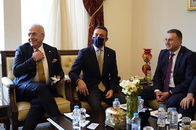 Fenerbahçe heyetinin Hatay Büyükşehir Belediyesi ziyaretinde, Milletvekili Mehmet Güzelmansur da hazır bulundu. -Cemil Yıldız-