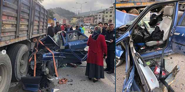 Belen’de, otomobil kamyonun altına girdi, baba ile oğlu can verdi.