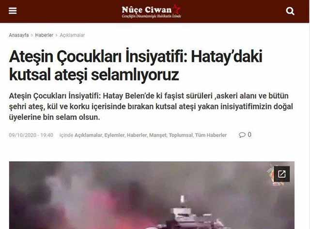 Belen, İskenderun ve Arsuz ilçelerinde meydana gelen ve akşam saatlerinde kontrol altına alınan yangınla ilgili, terör örgütünün medya organlarından ve örgüte yakın sosyal medya hesaplarından propaganda çalışması başlatıldı.