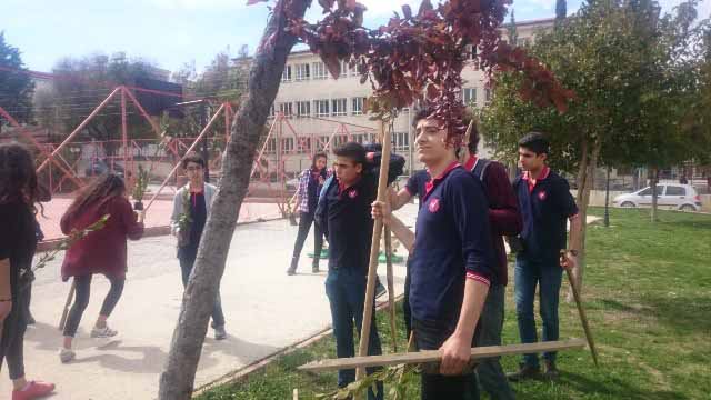 Antakya Fen Bilimleri Lisesi öğrencileri, çok sayıda fidanı toprakla buluşturdu.