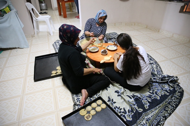 Kadınlar, imece usulüyle her gün bir evde toplanıp kurabiyeleri hazırlıyor, tepsilere dizilen kömbeler taş fırınlar da pişiriliyor. Güzel kokusu, ağızlarda bıraktığı tatla dikkati çeken kömbe için mesai ramazan ayının son gününe kadar devam ediyor. Ev hanımı Zeynep Pakin, ramazan bayramı öncesi kömbe yapımının büyüklerinden kalan bir miras olduğunu belirten Pakin, “Ramazanın son günlerinde kömbe yapımına başlıyoruz. Mahallede her gün bir evde toplanarak o ailenin kömbesini birkaç saatte yapıyoruz” dedi.