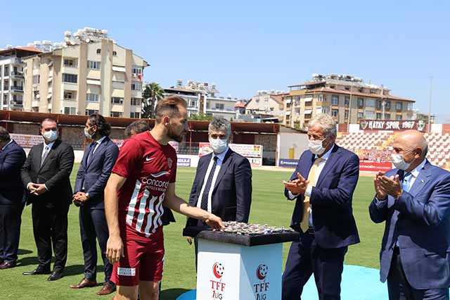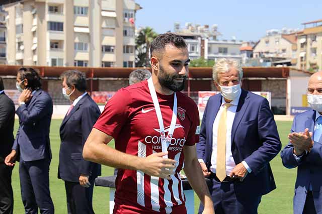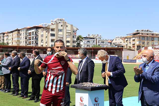 Geçtiğimiz hafta başında Antakya Atatürk Stadı’nda gerçekleşen törenle, Türkiye Futbol Federasyonu (TFF) Başkanı Nihat Özdemir, şampiyonluk kupasını Hatayspor’a verirken, kupayı havaya kaldıran ilk isim Takım Kaptanı Mesut oldu. Bu arada TFF yöneticileri, Hatayspor futbolcularına da birer madalyayı şampiyonluk armağanı olarak hediye etti. -Cemil Yıldız-