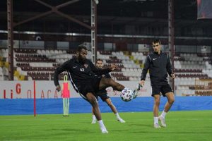 Bordo-Beyazlılar, yarınki maç öncesi, Salı günü, stadyumda maçın oynanacağı saatte (19.00’da) çalıştı ve çift kale maç oynadı. Hatayspor, dün tesislerde 5’e 2, dar alan, top kapma ve top çalışması yaptı, çift kale taktik maç oynadı.