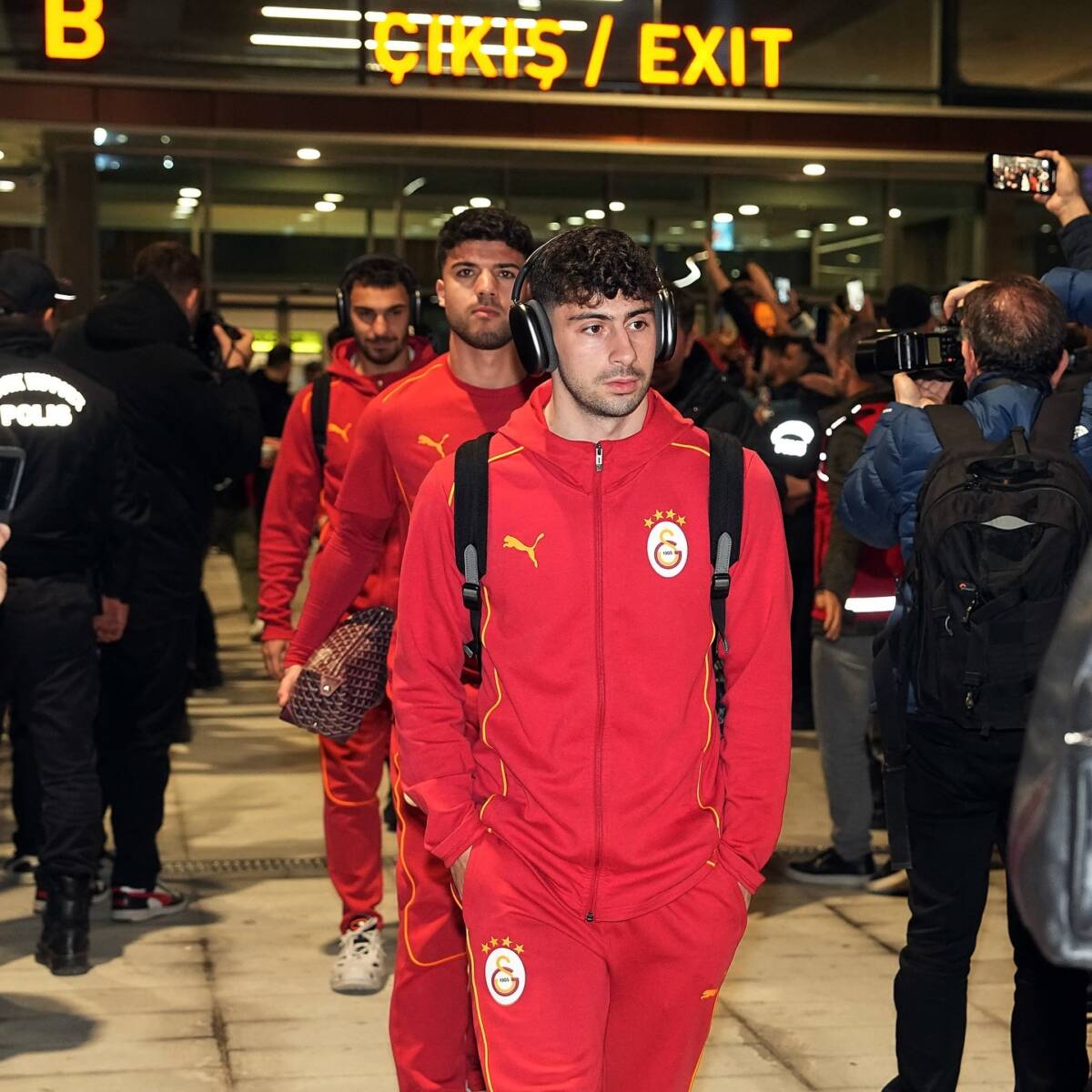 Mersin-Tarsus Çukurova Havalimanı’na iniş yapan Galatasaray futbolcularını yüzlerce taraftar büyük bir coşkuyla karşıladı. Havai fişekler patlatılırken, davul-zurna eşliğinde tezahüratlar yapıldı. Taraftarlar, otobüsle konaklama yapacakları otele hareket eden oyunculara eşlik etti.