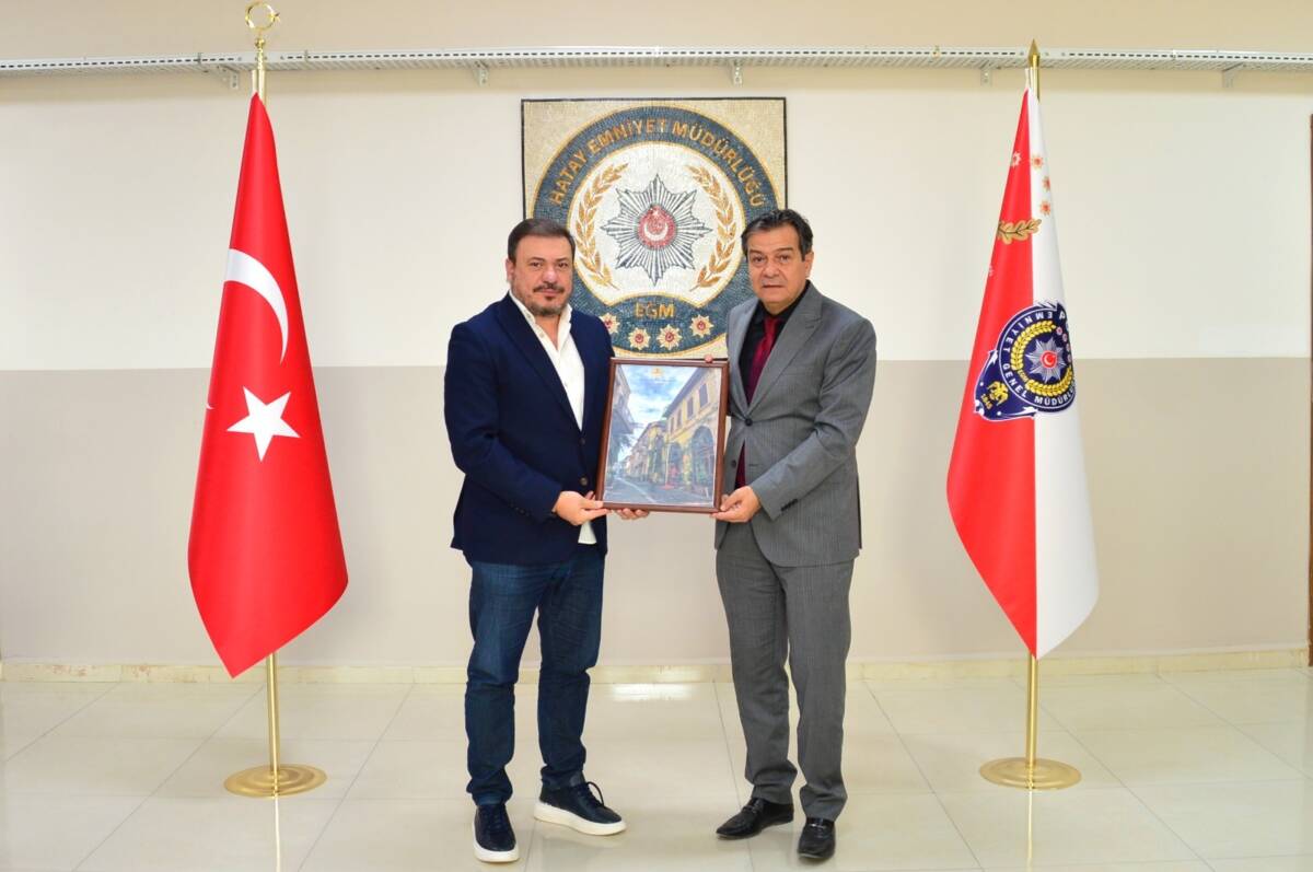 Ziyaret sonunda, HGC Başkanı Nihat Mazmanoğlu, Müdür Yılmaz’a Antakya’nın tarihi sokaklarını betimleyen özel bir tablo hediye ederek, emniyet teşkilatına çalışmalarında başarılar diledi.