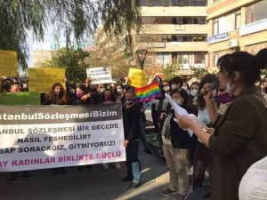 Kadınlar, alanlara çıktı, İstanbul Sözleşmesinin feshedilmesini protesto etti …