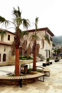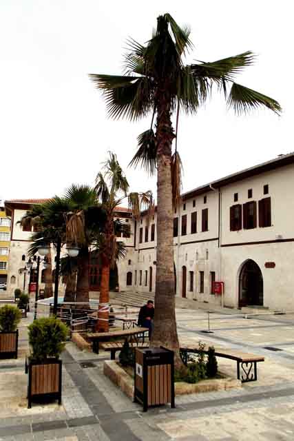 “Böylesine geleneksel yapıları bugüne kazandıranlara ne kadar teşekkür etsek azdır. Eski hallerini bilen bizler için bunun anlamı çok daha büyük. Şimdilerde ara ara soluklanmak için buraya konulan banklara oturup dünü izliyorum adeta. Eldekinden kalanlara bakıyorum aslında. Ama buna da şükür diyoruz. Merak ettiğimiz şey, şu palmiyeler. Güzel güzel de, buraya olmamış. Bir İşhanı önü için tamam ya da bir alışveriş merkezi ama… Burası olmamış! Bu eski konakların, eski Antakya evlerinin önü için hiç olmamış. Yakışmamış. Sahi kim tercih etmiş acaba… Vakıflar mı? Bu kadar restorasyon yapan ve eskiye bu kadar sadık bir kurum mu? Bence kaldırsınlar. Ama kaldırmadan önce gelip de bizlerin eski evlerinin avlularında hangi ağaçlar var, bir baksınlar. Antakya evlerinin avlularında hangi ağaçlar yetişmiş iyi bilsinler. Palmiye de neymiş! Bizlerin evlerinde portakal ağaçları vardır. Turunç ağaçları vardır… Limon ve diğerleri de… Annelerimizi hatırlarız, o ağaçlardan topladıkları meyvelerle yaptıkları reçelleri. O ağaçların gölgesinde yapılan sohbetleri. Şimdi de şu hale bakın… Bir sürü palmiye… Yakışmış mı diye soruyorsunuz ya! Yakışmamış. Hem de hiç yakışmamış.