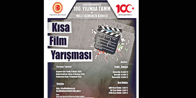 “Türkiye Büyük Millet Meclisi’nin (TBMM) Kuruluşu”, “Milli/Ulusal Egemenlik”, “Milli İrade”, “Türkiye Büyük Millet Meclisi’nin Milli Mücadelede Önemi ve Yeri”, “23 Nisan Ulusal Egemenlik ve Çocuk Bayramı” ya da “Gençlerin Bakışıyla 100. yılında TBMM” başlıklarından biri ya da bir kaçı konusunda hazırlanacak kısa filmler için tüm üniversite öğrencilerine çağrı yapıldı. İSTE ve MKÜ’de eğitim gören (ön lisans, lisans, yüksek lisans ve doktora öğrencileri) öğrencilerin de yoğun ilgi göstermesi beklenen kısa film yarışması için son başvuru tarihi 8 Mayıs 2020 olarak belirlendi. Sonuçların (İlk 10 Film)15 Haziran 2020’de açıklanacağı yarışma için şu bilgiye yer verildi: