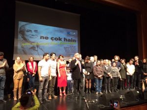 Usta Şair Ataol Behramoğlu’nun “Gezi Onurumuzdur” adlı şiirini beraber okuyan, Ali İsmail Korkmaz ve Berkin Elvan’ın Anneleri Emel Korkmaz ile Gülsüm Elvan, salonu dolduranlar tarafından ayakta alkışlandı.