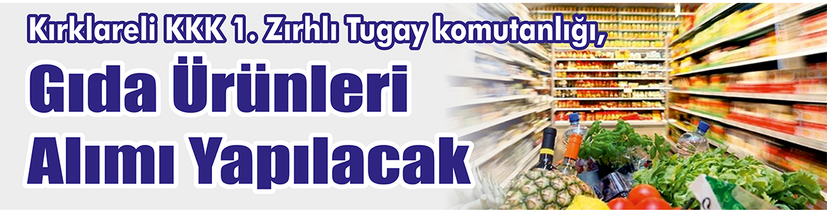 Kırklareli KKK 1. Zırhlı Tugay komutanlığı, Gıda ürünleri alımı yapacak.