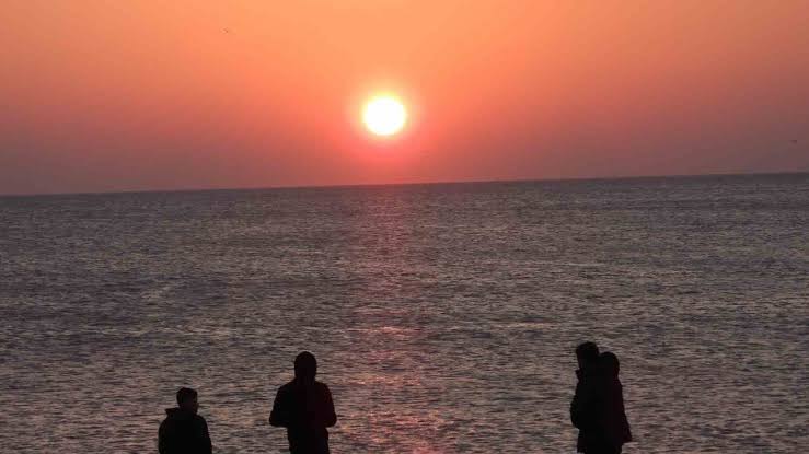 Hatay’da Asi Nehri’nin Akdeniz’le buluştuğu noktada gün batımıyla birlikte kızıla