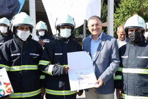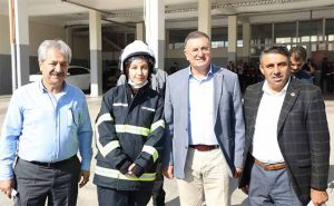 Başkan Savaş, Dagmar Blickwede ve itfaiye hizmetleri konusunda yeni projeler geliştirilen Birleşmiş Milletler Kalkınma Programı’nın (UNDP) Proje Yetkilisi Seracettin Yüzgülen, gönüllü itfaiyecilere sertifikalarını ve teçhizatlarını verdi.