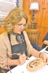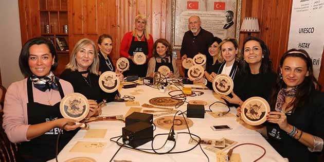 Antakya yakma ahşap resim sanatının iki usta ismi Zeynep Gülbol ile eşi Naim Gülbol, önceki gün Hatay Büyükşehir Belediyesi’ne ait Gastronomi Evi’nde, aralarında Prof. Dr. Nazan Savaş’ın da bulunduğu bir grup katılımcı kadına, sanatın inceliklerini aktardı.