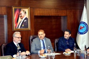 Ak Parti Hatay Büyükşehir Belediye Başkan adayı İbrahim Güler’in ziyaretinde; İTSO Başkanı Levent Hakkı Yılmaz, İTSO Meclis Başkanı Okan Belli, İTSO Başkan yardımcısı Muhsin Yeter, İTSO muhasip üye Gassan Kuran, İTSO Yönetim