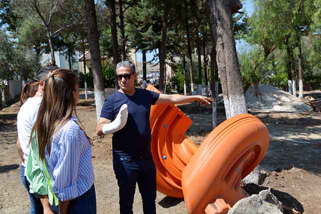 Belen Belediye Başkanı İbrahim Gül, askılı koluyla görevini sürdürürken, önceki gün, Belediye tarafından Bakras Mahallesi Yalı Sokak’ta yapılan asfalt çalışmalarını yerinde inceledi, Baş Amir Hasan Güççük ile istişarede bulundu. -Cemil Yıldız-