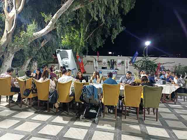 Yemek öncesi, üyelere katılımlarından dolayı teşekkür eden Eğitim İş Hatay Şube Başkanı Mustafa Günal, konuşmasında pandemi koşullarında okulların durumu ile ilgili yaptığı değerlendirmede; “Eğitim İş olarak pandeminin ilk başladığı günden, bu güne kadar okullarımızın gerekli şartların sağlanarak yüz yüze eğitime açılması gerektiğini savunduk. Geldiğimiz noktada okulların yüz yüze açıldığını, fakat yaptığımız okul gezilerinde ve okullarımızda kısa sürede görünen pozitif vakalar nedeniyle karantinaya alınan sınıflar bize pandemiye uygun hiç bir önlemin alınmadığını göstermiştir” dedi.