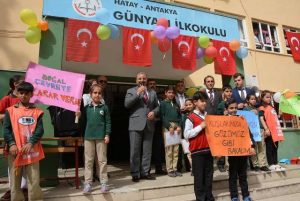 Antakya’daki eğitim kurumlarından Günyazı İlkokulu, geçtiğimiz hafta içinde gerçekleşen “Kuş Yuvaları Projesi” uygulaması ile beraber, ilimiz okulları içinde farkındalık yaratan bir projeye de imza atmış oldu. Günyazı İlkokulu Yönetimi, öğretmenleri ile öğrencileri el ele verdi, “Kuşlar Yuvalarına Kavuşuyor” adlı etkinlikle 46 adet kuş yuvasını okul bahçesindeki ağaçlara astı.