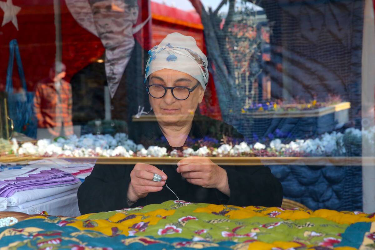 Kahramanmaraş merkezli 6 Şubat 2023 depremlerinde evi hasar gören, “Yaşayan İnsan Hazinesi” ödüllü yorgan ustası Nahya Güzelyurt, afetzede sanatçıların desteklenmesi amacıyla kurulan Kültür ve Sanat Çarşısı’nda yeniden tezgahının başına geçti.