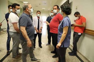 Hatay Eğitim ve Araştırma Hastanesi Başhekim Vekili Dr. Mahmut Bayrakçıoğlu, hafta sonunu hastanede geçirdi. Beraberindeki heyetle birlikte, hastanenin acil servisleri ve yoğun bakım ünitelerini ziyaret eden Başhekim Vekili Dr. Bayrakçıoğlu, halka sunulan kaliteli sağlık hizmetleri ile ilgili uygulama ve çalışmaları yerinde inceleyerek, sorumlulardan bilgi aldı ve yerinde değerlendirmelerde bulundu.