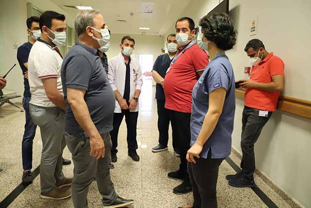 Başhekim Vekili Dr. Bayrakçıoğlu, sağlık çalışanlarına kolaylık ve başarı dileyerek, beraberindeki ekiple birlikte ünitelerden ayrıldı. -Selvi Günay-