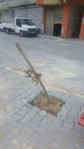 Samandağ ilçesinin Yaşar Kemal Caddesi, Cumhuriyet Caddesi ile 148. Sokak’ta yaşanan bu doğa ve ağaç katliamı adli mercilere duyuruldu ve gereğinin yapılması istendi.