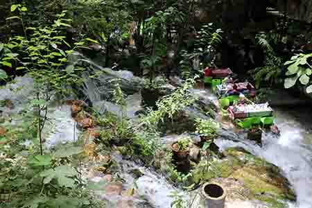 Vatandaşların bazıları şelalelerin olduğu alanda bol bol fotoğraf çektirirken, bazıları da suyun içerisine kurulan masalarda yemeklerini yemeyi tercih etti.