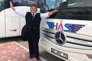 Hatay HAS Turizm şehirlerarası otobüs işletmesi, meslekte 26 yıllık deneyimli bir kadın şoförü direksiyon başında görevlendirdi.