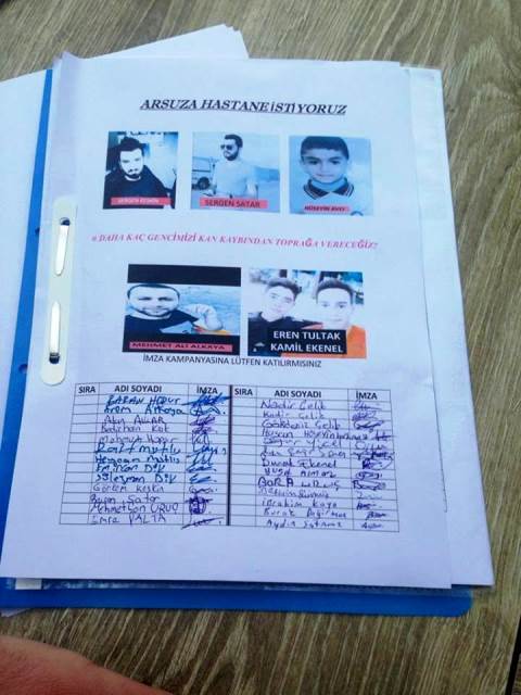 Trafik kazalarında kaybedilmiş olan gençlerin ardından, Arsuz halkı, ‘Arsuz’a hastane istiyoruz’ imza kampanyası başlatmıştır. Kampanya metninde, ‘2018 ve öncesinde hızlı müdahalede bulunulamadığı için birçok canımızı kaybettik. En yakın devlet hastanesi 35 km uzaklıktaki İskenderun ilçesinde bulunmaktadır ve hızlı müdahale gereken olaylar, bu sebepten ötürü ölümle sonuçlanmaktadır. İlçemizde devlet hastanesi eksikliğini ciddi şekilde hissetmekteyiz’ denilmiştir.”