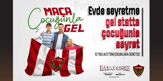 Hatayspor, 23 Nisan Ulusal Egemenlik ve Çocuk Bayramı sebebiyle, 27 Nisan Cumartesi günü oynanacak Adanaspor maçını, minik taraftarların ücretsiz izleyebileceğini duyurdu.