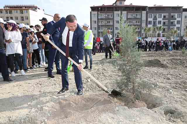 Hatay Milletvekili Sabahat Özgürsoy Çelik de konuşmasında, etkinliğin gerçekleşmesinde emeği geçen herkese teşekkür etti. Hatay Valisi Rahmi Doğan ise, tüm Türkiye’de aynı anda fidanların toprakla buluşaca-ğını hatırlatarak, şöyle devam etti: