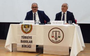 Sunumun ardından Baro Başkanı Av. Ekrem Dönmez, Yargıtay İkinci Hukuku Dairesi Başkanı Ömer Uğur Gençcan’a plaket takdim ederek teşekkür etti.-Gökay Gökdemir-