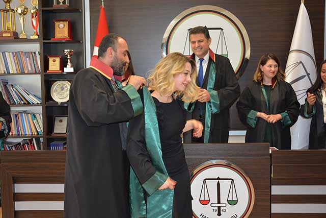Hatay Barosu’na 5 yeni Avukat daha katıldı. Baro’nun yeni üyesi 5 Avukat da kadın. Staj dönemini başarıyla tamamlayan Çağ Üniversitesi Hukuk Fakültesi mezunu Tülin Mormenekşe, Lefke Avrupa Üniversitesi Hukuk Fakültesi mezunu Elif Solğun, Gaziantep Üniversitesi Hukuk Fakültesi mezunu Nagihan Tut, Ufuk Üniversitesi Hukuk Fakültesi mezunu Öykü Özay Uçar, Yaşar Üniversitesi Hukuk Fakültesi mezunu Fidan Asena Çalım, Antakya Adliyesi’nde düzenlenen yemin töreninde ruhsatlarını Baro Başkanı Av. Ekrem Dönmez’in elinden aldı. Tülin Mormenekşe’ye cübbesini Annesi Müzeyyen Mormenekşe, Elif Solğun’a cübbesini Av. Mustafa Özçelik, Nagihan Tut ve Öykü Özay Uçar’a cübbelerini Baro Başkanı Av. Ekrem Dönmez, Fidan Asena Çalım’a cübbesini Av. Fevzi Randa giydirdi.