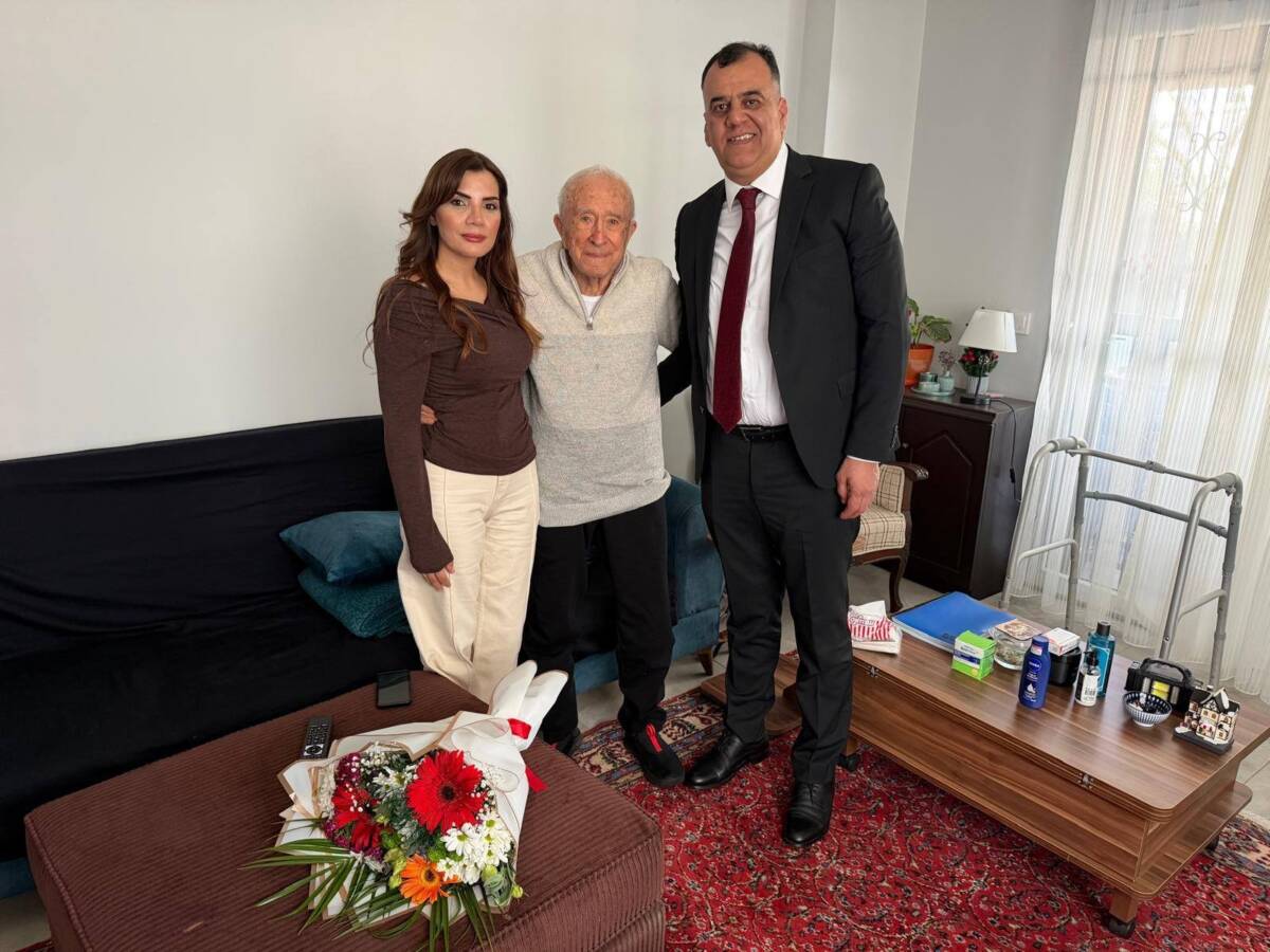 Hatay Barosu Başkanı Av. Hatay Tut, Yönetim Kurulu Üyesi Av. Derya Nur Aslan ile birlikte Av. Nabi İnal’ı evinde ziyaret ederek Avukatlar Günü’nü kutladı.