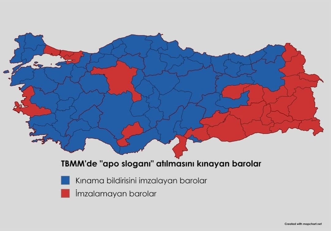 Türkiye genelinde 57 baro, TBMM’de terör örgütü lideri Abdullah Öcalan lehine atılan sloganlara karşı ortak bir kınama bildirisine imza attı. Ancak bu bildiriye Hatay Barosu’nun imza atmaması sosyal medyada büyük yankı uyandırdı.