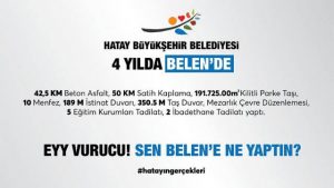 Sosyal medya üzerinden “Hatay’ın Gerçekleri” imzasıyla Hatay Büyükşehir Belediyesi’nin hizmetleri anlatılırken, AKP ve MHP’ye mensup 12 ilçe belediyesinin ise hangi hizmetleri yaptıkları soruluyor. 24 Haziran seçimlerinin yaklaştığı bu günlerde, ilimiz yerel siyasetinde tartışmalara yol açması beklenen Ali Gezgin imzalı sosyal medya paylaşımlarından birkaçı şöyle:
