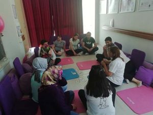 Hatay Devlet Hastanesi’nde oluşturulan Gebe Okulu’nda, anne adaylarına, eşleriyle birlikte katıldıkları eğitim ve eğlenceli oyunlar çerçevesinde, acil durumlarda izlenecek yollar anlatılıyor, sürece dair bilgi veriliyor.