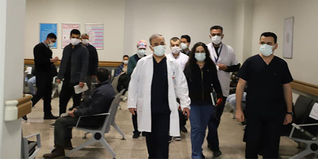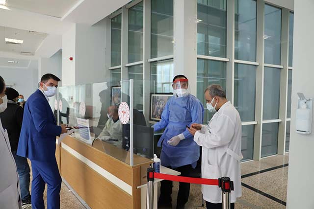 “Başhekimimiz Dr. Mahmut Bayrakçıoğlu, akşam saatlerinde, pandemi polikliniklerinde ve PCR Laboratuvarında incelemelerde bulundu.