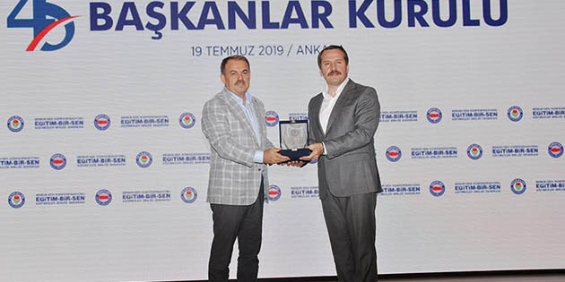 “Eğitim Bir Sen 45. Başkanlar Kurulu Toplantısı, Genel Merkez binamızda yapıldı. Toplu sözleşme sürecinin değerlendirildiği toplantının sonunda, en fazla üye kaydı yapan şube başkanlarına plaket takdimi yapıldı. Eğitim Bir Sen Hatay 1 Nolu Şubesi, iki mutabakat arası 819 üye kaydı yaparak birinci olmuştur. Bu başarıda emeği geçen tüm teşkilat yöneticisi ve mensubu arkadaşlarıma teşekkür ederim.” -Cemil Yıldız-