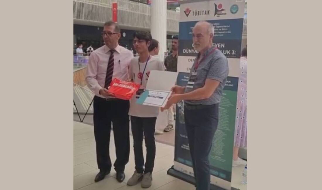 Proje kapsamında sunumlarını başarıyla gerçekleştiren ekip adına ödül plaketini öğrenci Baran Koku, Balıkesir Üniversitesi Dekanı’nın elinden aldı. Bu anlamlı ödül, gençlerin bilime olan ilgisini ve azmini gözler önüne serdi.