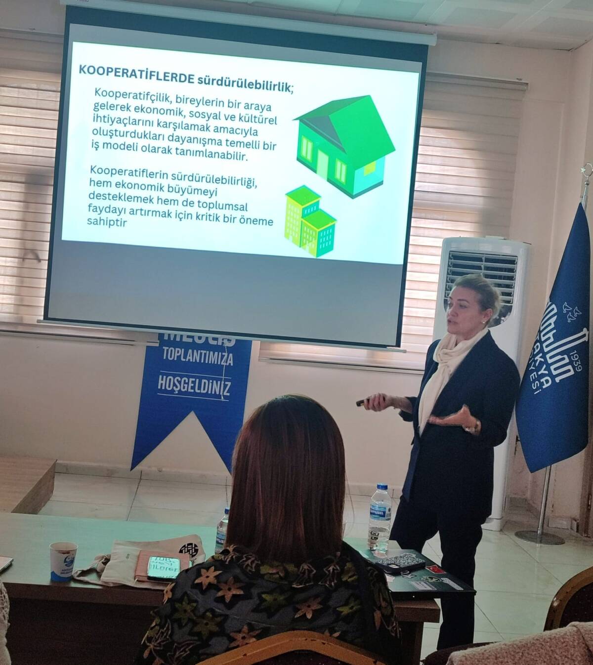 Hatay’daki kadın girişimcilerin de yoğun ilgi gösterdiği seminerde, kooperatiflerin nasıl uzun ömürlü olabileceği ve yerel üreticilerin nasıl desteklenebileceği konuları detaylı şekilde ele alındı.