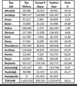 İşte, Hatay’ın ilçelerindeki Türk ve Suriyeli nüfus verileri: