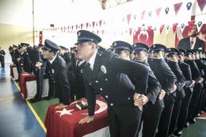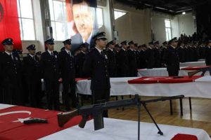 Hatay Polis Meslek Eğitim Merkezi’nde 22. dönem eğitim programını tamamlayan polis adayları da mezuniyet sevinci yaşadı. Polis Meslek Eğitim Merkezi’nin spor salonunda düzenlenen törende, saygı duruşunda bulunuldu, İstiklal Marşı okundu. Törende konuşan Hatay Polis Meslek Eğitim Merkezi Müdürü Ali Canbolat, Atatürk ilke ve inkılaplarına bağlı, devletin ve milletin bölünmez bütünlüğüne duyarlı 253 öğrenciyi mezun ederek teşkilat saflarına katmanın heyecanını ve gururunu yaşadıklarını söyledi.