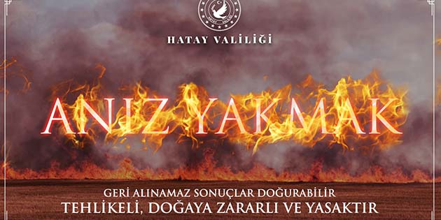 Hatay Valiliği, özellikle geçtiğimiz hafta içinde ilimizde yaşanan birçok orman ve çalılık yangını sonrası anız yakımının tehlikelerine yeniden dikkat çekti. Vali Rahmi Doğan, sosyal medya paylaşımında soruna dikkat çekerek, “Anız yakmak tehlikeli, doğaya zararlı ve yasaktır. Geri alınamaz sonuçlar doğurabilir.