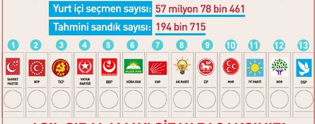 YSK bilgilendirmesine göre, oy verme saatlerinin 07.00-16.00 olduğu illerde saat 16.00, diğer illerde saat 17.00’den önce oylar sayılmaya başlanamayacak. Sandık seçmen listesindeki bütün seçmenler oylarını kullanmış olsalar bile oy vermenin bitim saatinden önce sandıklar kesinlikle açılamayacak.