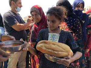 Günlük 1000 kişilik yemeği AFAD koordinesinde dağıttıklarını belirten Vardı, “Suriye’de aşırı sıcaklık ve kuraklık nedeniyle oradaki insanlar çok zor durumdalar. Dünyadaki bütün mazlum insanların gözü Türkiye’de. Biz de bu ihtiyaç sahibi insanlara hizmet etmeye gayret gösteriyoruz” dedi. Mehmet ÖZGÜN