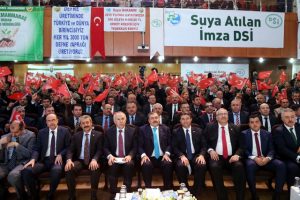 Valilik ziyareti ardından Hatay Kültür Merkezi’nde düzenlenen Devlet Su İşleri (DSİ) Tesisleri Toplu Temel Atma Töreni’ne katılan Bakan